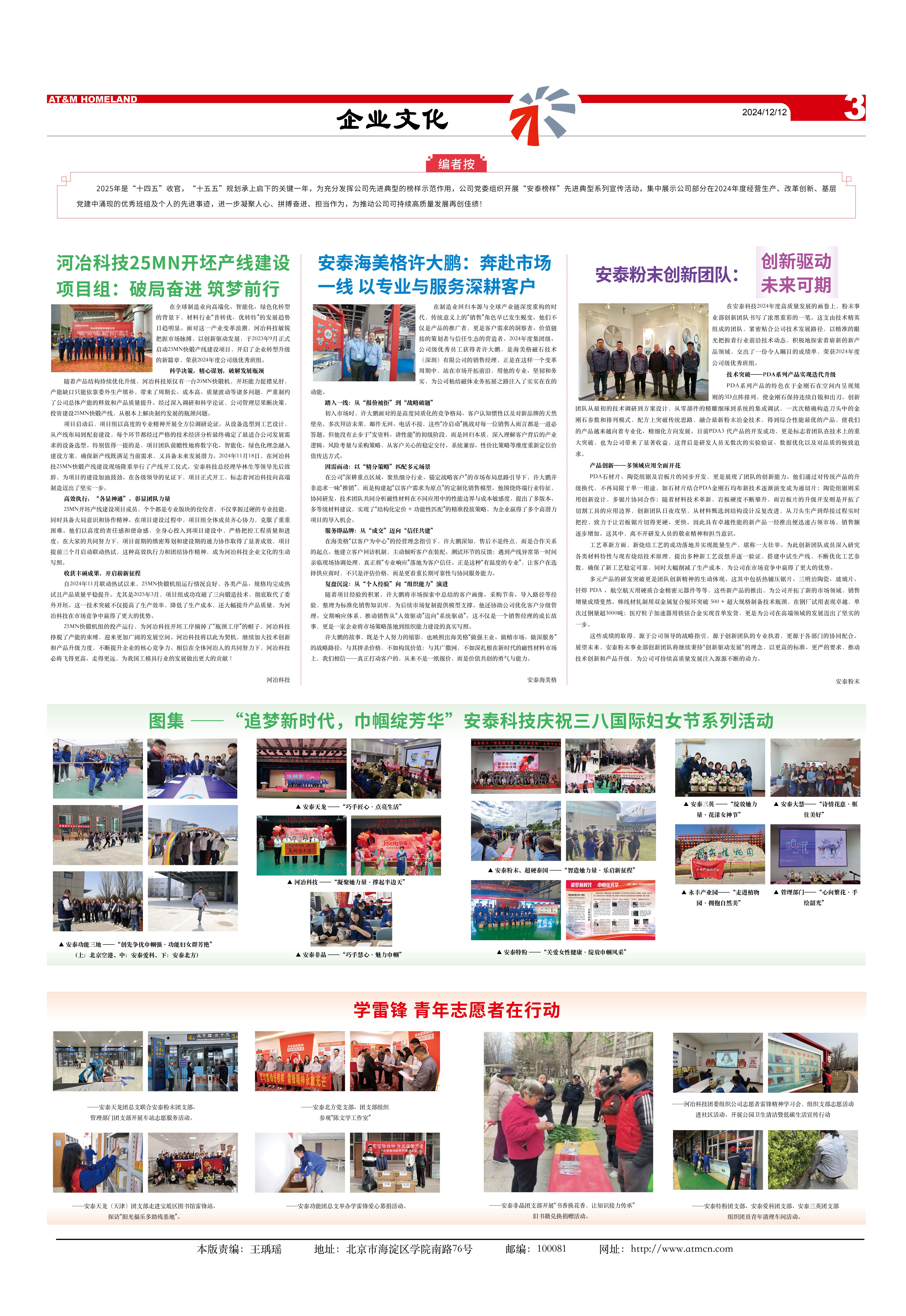 2025年是“十四五”收官,“十五五”規(guī)劃承上啟下的關(guān)鍵一年,為充分發(fā)揮公司先進(jìn)典型的榜樣示范作用,公司黨委組織開(kāi)展“安泰榜樣”先進(jìn)典型系列宣傳活動(dòng),集中展示公司部分在2024年度經(jīng)營(yíng)生產(chǎn)、改革創(chuàng)新、基層黨建中涌現(xiàn)的優(yōu)秀班組及個(gè)人的先進(jìn)事跡,進(jìn)一步凝聚人心、拼搏奮進(jìn)、擔(dān)當(dāng)作為,為推動(dòng)公司可持續(xù)高質(zhì)量發(fā)展再創(chuàng)佳績(jī)!