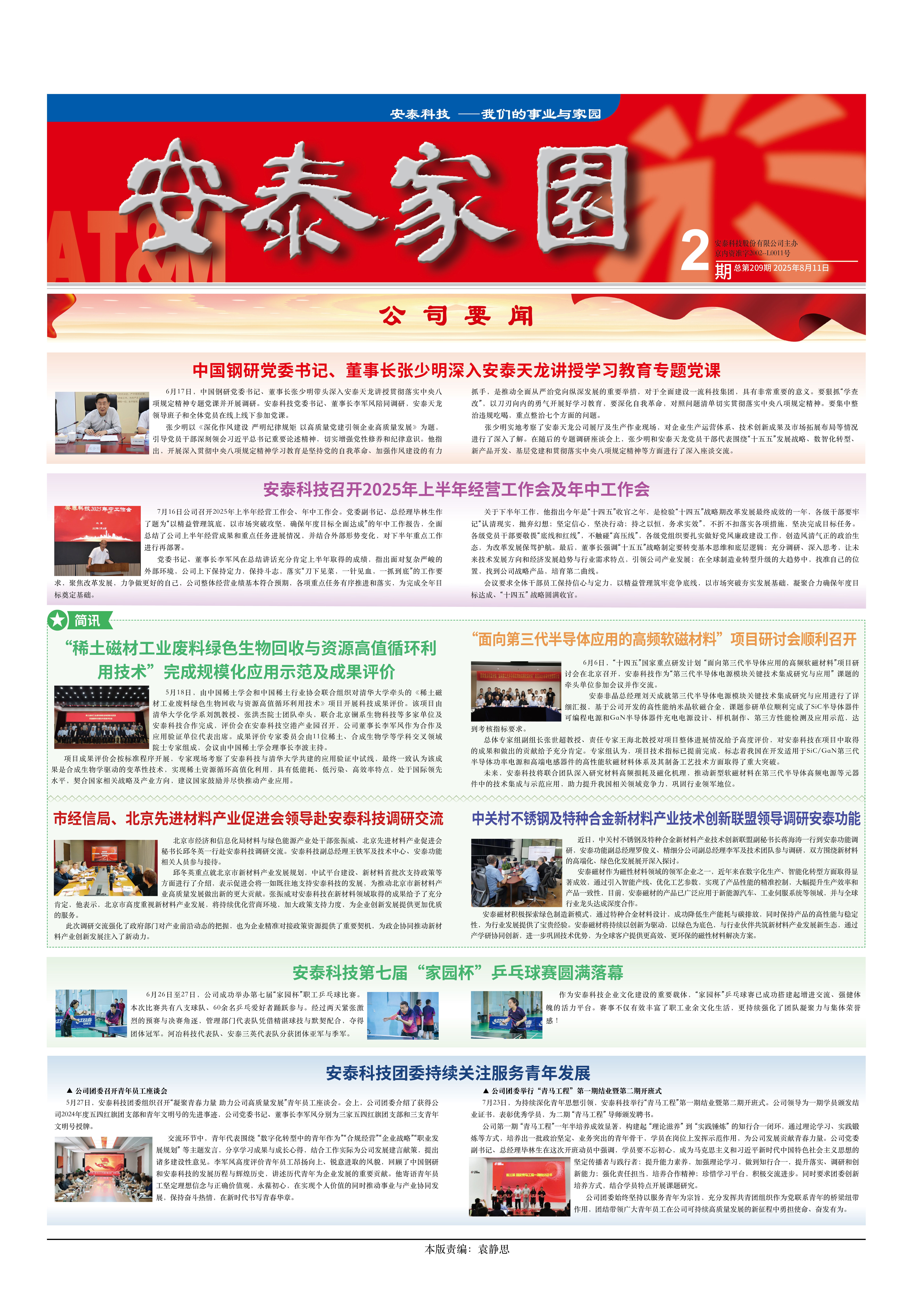 6月17日,中國鋼研黨委書記、董事長張少明帶頭深入安泰天龍講授貫徹落實(shí)中央八項(xiàng)規(guī)定精神專題黨課并開展調(diào)研。安泰科技黨委書記、董事長李軍風(fēng)陪同調(diào)研,安泰天龍領(lǐng)導(dǎo)班子和全體黨員在線上線下參加黨課。